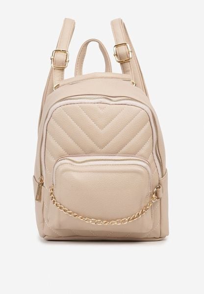 Beżowy Plecak Ozdobiony Łańcuszkiem i Pikowaniem Kolaggia
