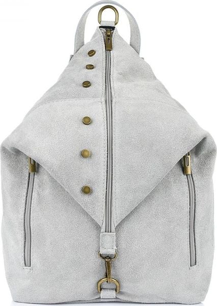 Vera Pelle Jasnoszary Włoski Stylowy Plecak Damski Skórzany Zamsz A4 W14