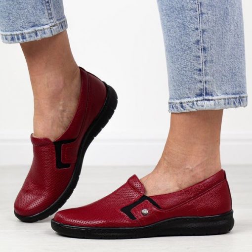 Czerwone skórzane Polskie półbuty damskie Deoni 623/1