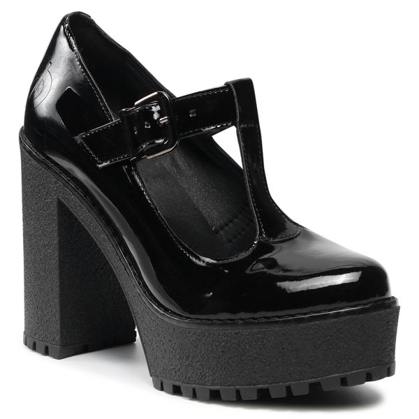 Czarne Czółenka na Wysokim Słupku z Platformą i Klamerką w Stylu Mokasynów Ledda