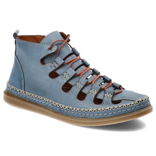 Niebieskie botki ARTIKER – 52C0638 Niebieski to finezyjny fason, przykuwający wzrok wyszukanym wzornictwem. Kunsztowną cholewkę utworzono ze skóry naturalnej licowej. Niespotykany wykrój zachęca do komponowania niebanalnych stylizacji na wiosnę i lato. Wkładka ze skóry naturalnej wspomaga układ ruchu, zmniejszając obciążenie kręgosłupa. Damskie botki ARTIKER – 52C0638 Niebieski