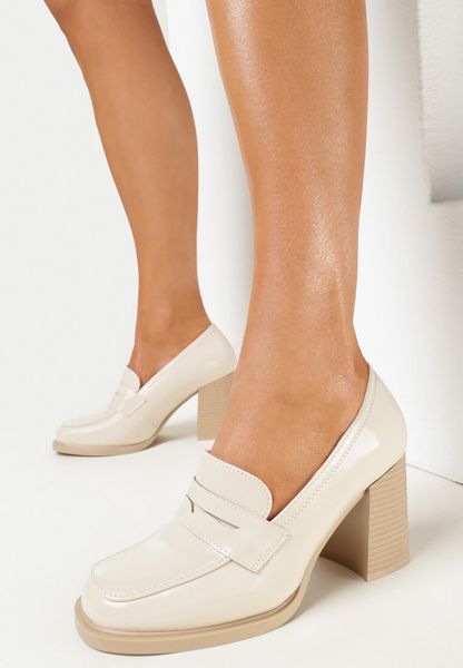 Beżowe Półbuty na Słupku z Ozdobnym Paskiem Elellia