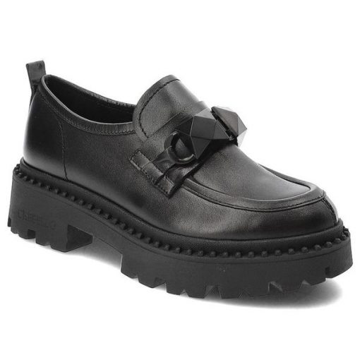 Czarne Półbuty Chebello Modne Skórzane Mokasyny Damskie