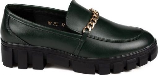 Zielone Mokasyny na Platformie z Imitacji Zamszu Ozdobione Łańcuszkiem Ardanica