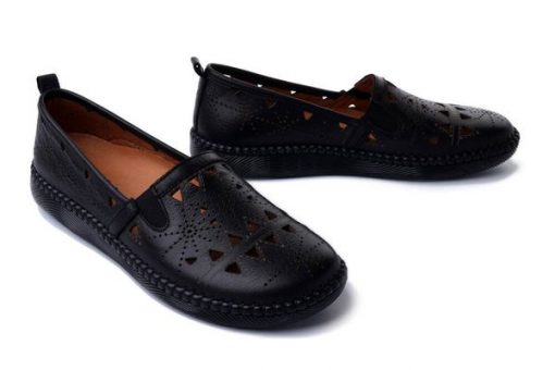 Półbuty damskie. Naturalna skóra. Ażurowa cholewka. Miękka, skórzana wkładka. Gumy ściągające. Elastyczna, antypoślizgowa podeszwa.