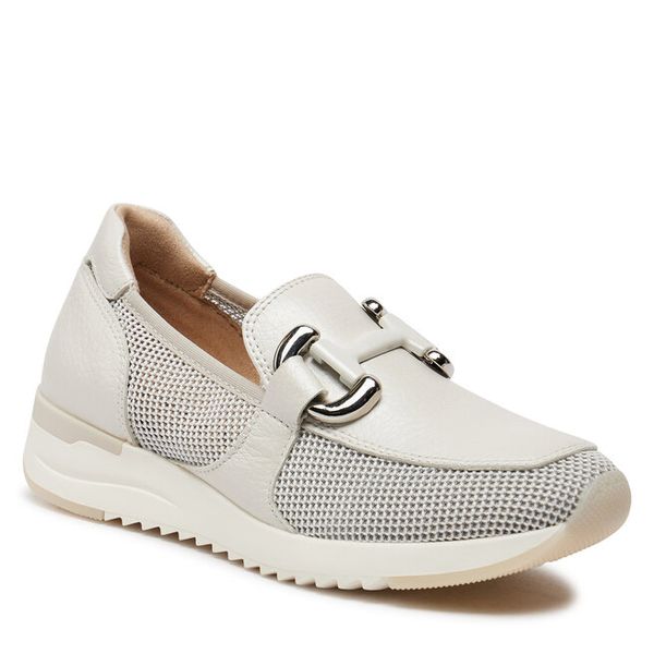 Białe Półbuty w Stylu Loafersów z Perforacją Drobnymi Cyrkoniami i Klamrą Keryth