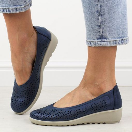 Granatowe ażurowe półbuty damskie na koturnie Potocki 90300
