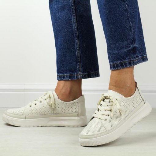 Białe wt/wt ażurowe skórzane półbuty damskie Sergio Leone sp020