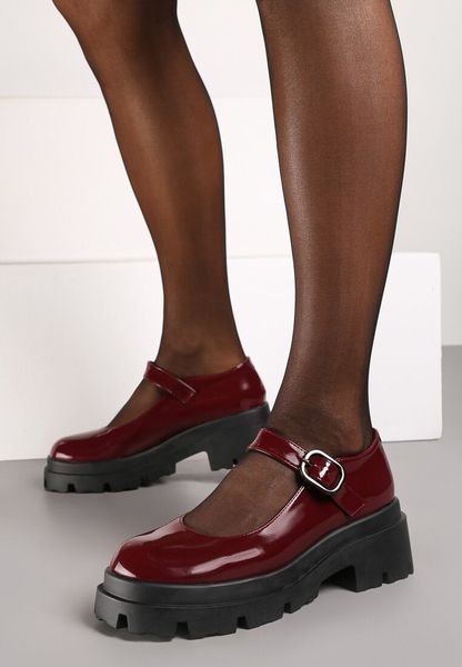 Bordowe Półbuty na Platformie w Stylu Mary Jane Ozdobione Metaliczną Sprzączką Zinida