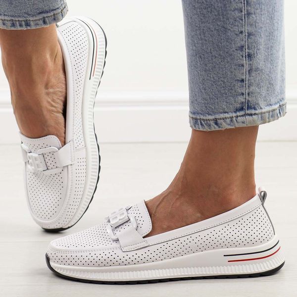 Białe ażurowe skórzane półbuty damskie S.Barski 556