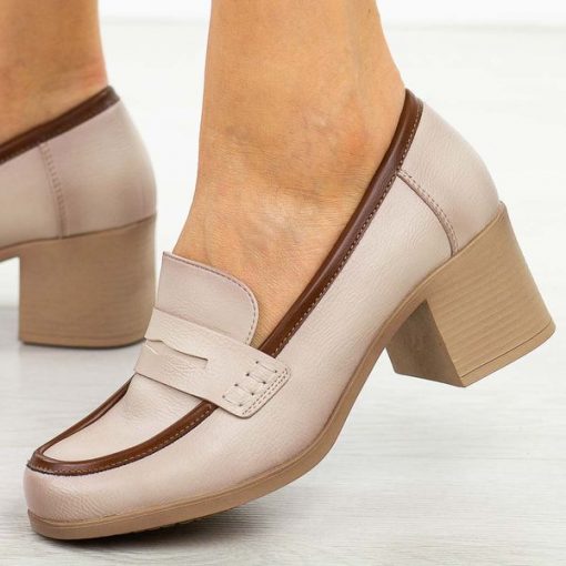 Beżowe półbuty damskie na obcasie, mokasyny Potocki 12628