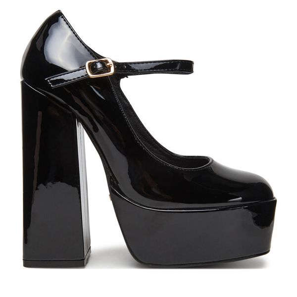 Czarne Czółenka z Imitacji Zamszu na Słupku i Platformie z Metalową Aplikacją Arizia