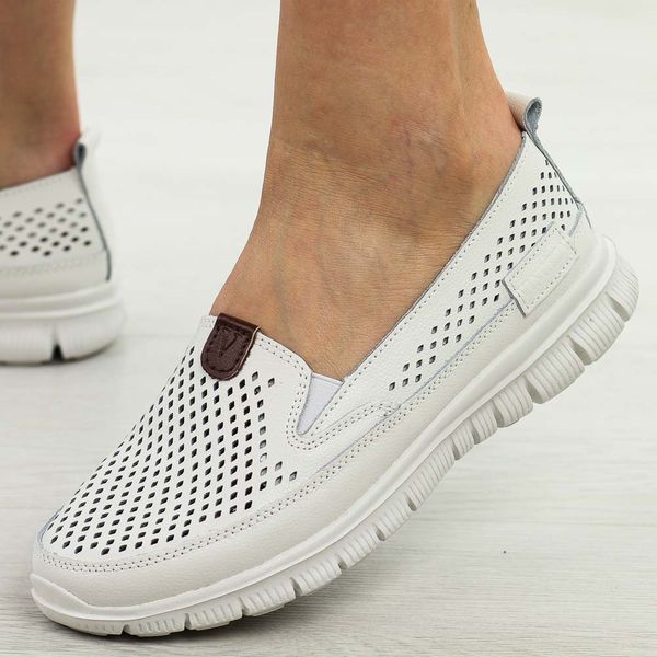 Białe ażurowe skórzane półbuty damskie Vinceza 95336