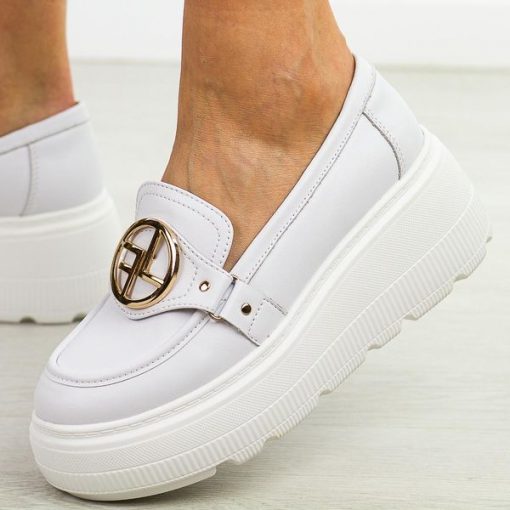 Białe skórzane półbuty damskie na platformie Cambell 661