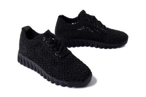 Materiał tekstylny. Siateczkowa struktura. Płaska podeszwa. Modny design. Wsuwane.