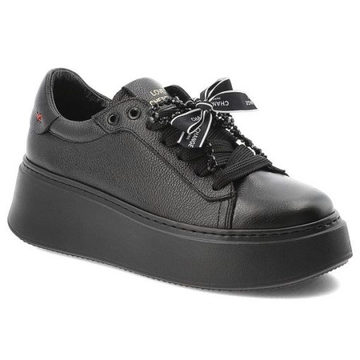 Czarne Sneakersy Chebello Skórzane Obuwie Damskie
