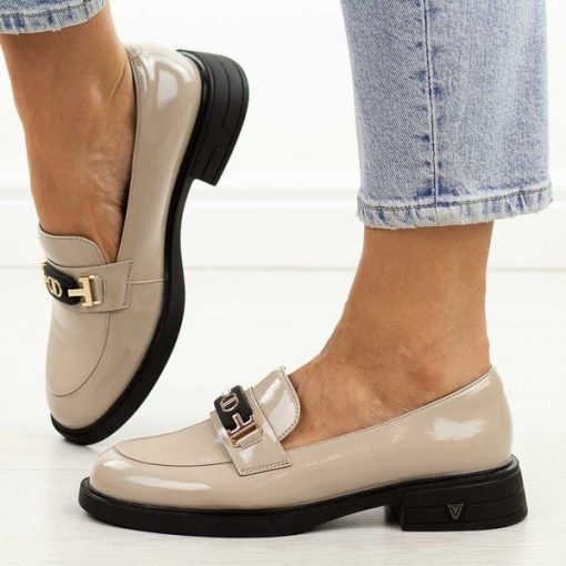 Beżowe lakierowane skórzane półbuty damskie Vinceza 39957