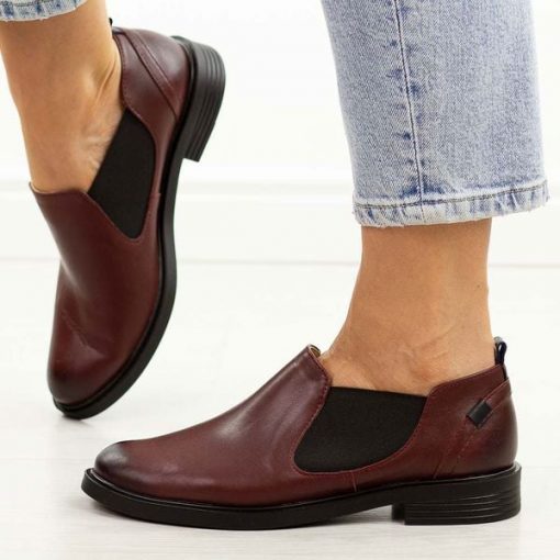 Bordowe skórzane Polskie półbuty damskie Gregors 1156