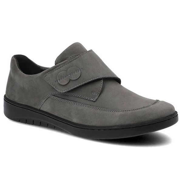 Półbuty damskie Pollonus, naturalna skóra nubuk z regulowanym zapięciem na rzep niska konstrukcja i elastyczna podeszwa, szare, 5-1209-004