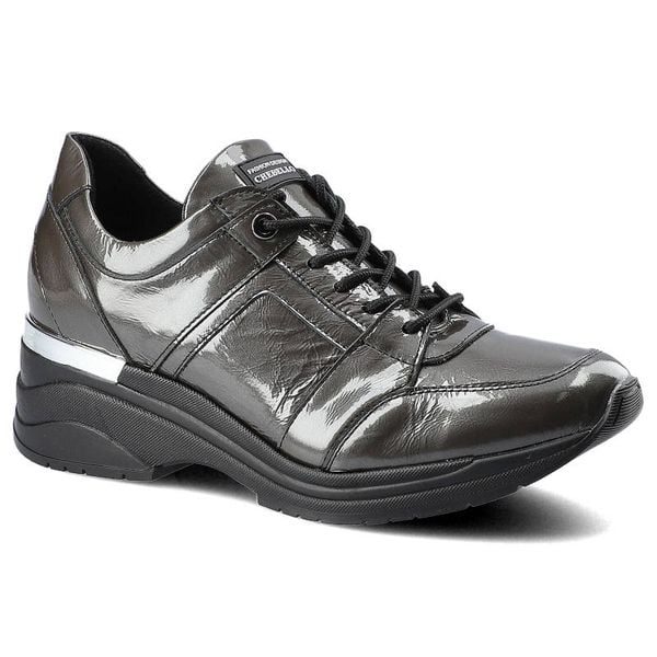 Sneakersy damskie Chebello, sznurowany fason lakierowana cholewka podwyższona amortyzująca podeszwa stabilna konstrukcja, grafitowe, 2578_281-000-PSK