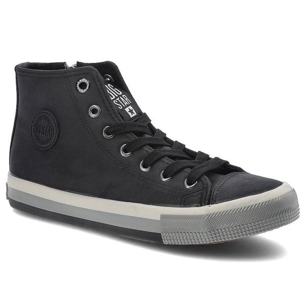 Sneakersy damskie Big Star, z wysokiej jakości materiału syntetycznego z gładką cholewką sznurowanym zapięciem, czarne, II274233
