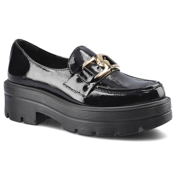 Półbuty damskie Lemar, ze skóry naturalnej lakierowanej z gładką cholewką klasycznym wycięciem ozdobnym metalowym detalem oraz masywną stabilną podes