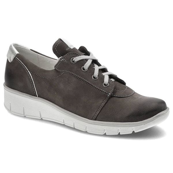 Półbuty damskie Pollonus, na niskim koturnie i ze skóry naturalnej, szare Samuel, 5-0902-024