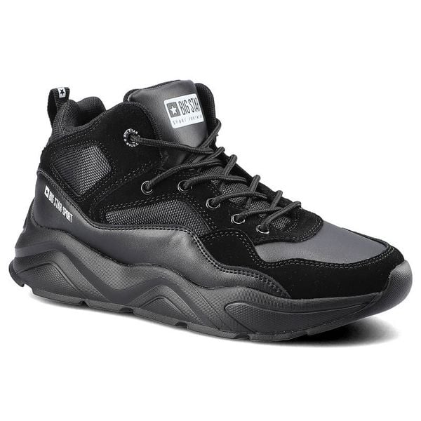 Sneakersy damskie Big Star, z wysoką cholewką klasycznym sznurowaniem oraz masywną profilowaną podeszwą z wyraźnym bieżnikiem, czarne, GG274644