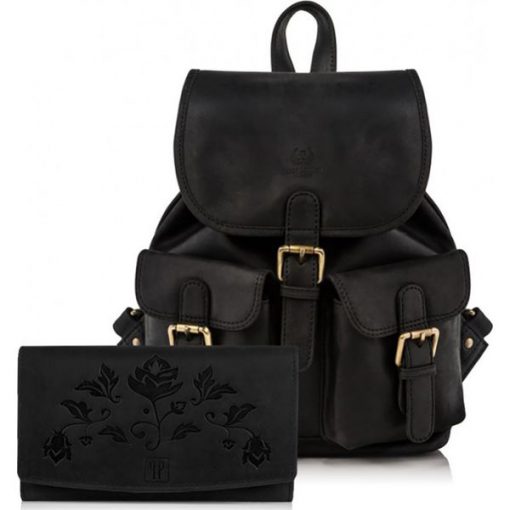 Zestaw damski skórzany PAOLO PERUZZI ZUP-26-BL czarny plecak i portfel