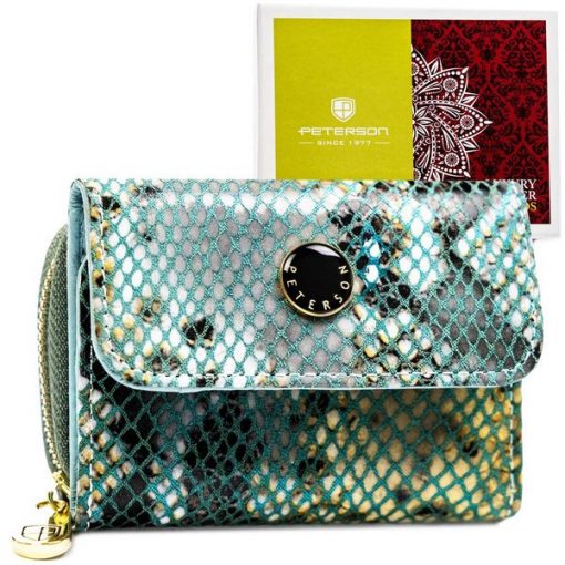 Elegancki portfel damski Peterson z ochroną RFID to funkcjonalność i styl w jednym! Posiada przegrodę na banknoty i bilon. Zamykany na zatrzask. Idealny na prezent – zapakowany w ozdobne pudełko. Wyróżnij się unikalnym designem!