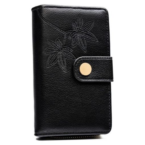 Zgrabny portfel damski ze skóry ekologicznej, zamykany zatrzaskiem. Bardzo pojemny, zawiera dużo zakładek na karty i dokumenty oraz obszerną sekcję na monety zamykaną suwakiem. Akcesorium bez trudu mieści dowód rejestracyjny pojazdu.