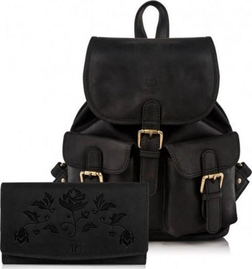 Paolo Peruzzi Zestaw damski skórzany PAOLO PERUZZI ZZ-06 czarny plecak i portfel