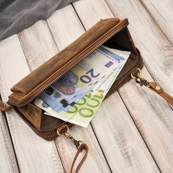 Paolo Peruzzi Portfel damski skórzany duży z miejscem na telefon kopertówka koniakowa damska T-141-CG