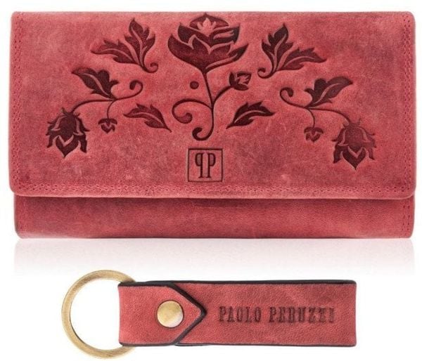 Zestaw prezentowy dla kobiet ZUP-95-RD portfel damski skórzany T-05-RD breloczek vintage T-87-HRD