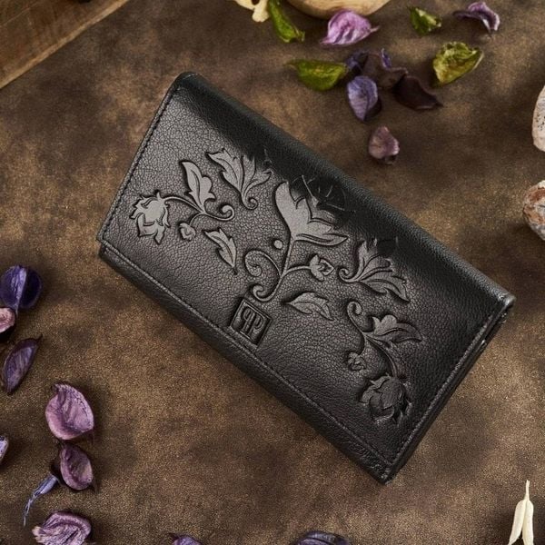 Paolo Peruzzi CZARNY PORTFEL DAMSKI PAOLO PERUZZI NA SUWAK KWIATY T-08-BL