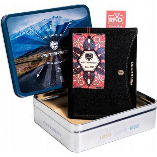 Peterson Czarny, pionowy portfel męski ze skóry naturalnej Peterson NoSize