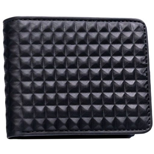 Czarny portfel pokryty stylowym, geometrycznym wzorem 3D. Posiada 9 praktycznych miejsc na karty i 4 schowki na dokumenty dla pełnej organizacji. Wyposażony w system RFID. Zapakowany w eleganckie pudełko.