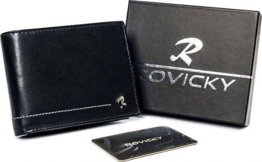 Rovicky Poziomy, skórzany portfel męski z ozdobnym przeszyciem Rovicky NoSize