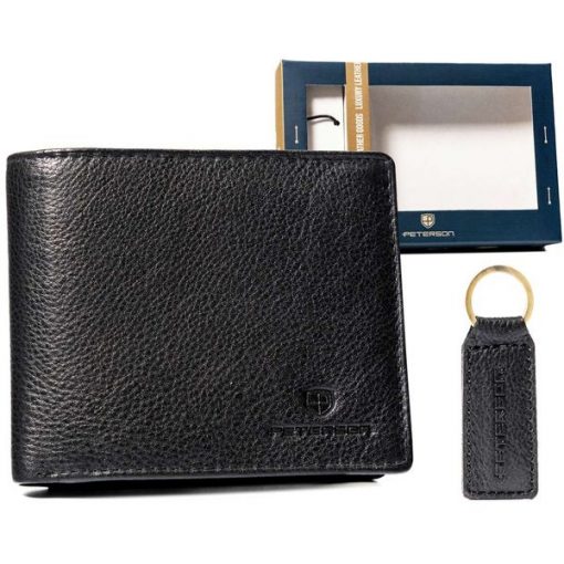 Zestaw prezentowy z portfelem i brelokiem Peterson [DH] PTN PK5-N4L-6853 czarny