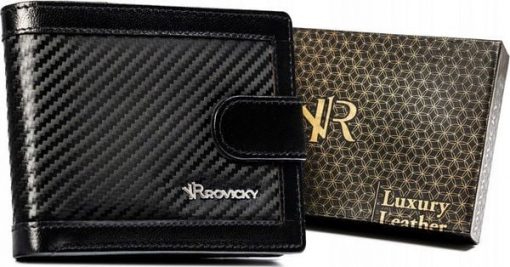 Rovicky Elegancki portfel męski ze skóry naturalnej na zatrzask – Rovicky NoSize