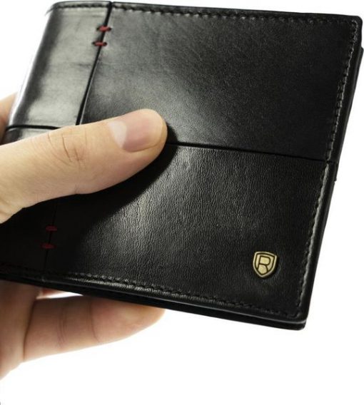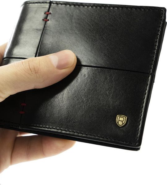Rovicky Poziomy portfel męski z czerwonym przeszyciem, skóra naturalna licowa Rovicky NoSize