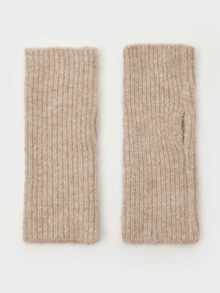 Sinsay – Prążkowane rękawiczki mitenki – beżowy –
