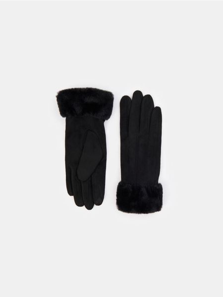 Sinsay – Rękawiczki z futerkiem ozdobnym – czarny –
