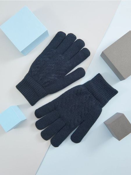 Sinsay – Rękawiczki – granatowy – teksturowana, dzianinowa powierzchnia,wykończenie przy nadgarstku, które jest nieco bardziej ściągnięte