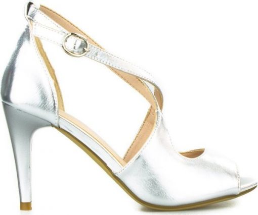 Sergio Leone Sandały na szpilce retro połyskujące srebrne Sergio Leone-37