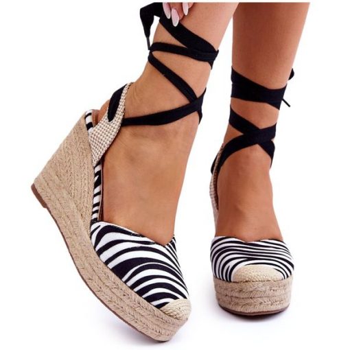 Wiązane Sandały Na Wysokim Koturnie Czarno-Białe Lendy