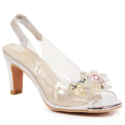 Sandały damskie transparentne z kamieniami srebrne Sabatina 1014-5 srebrny