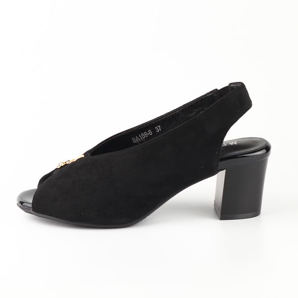Czarne zamszowe sandały damskie na obcasie M.Daszyński Sa169-6