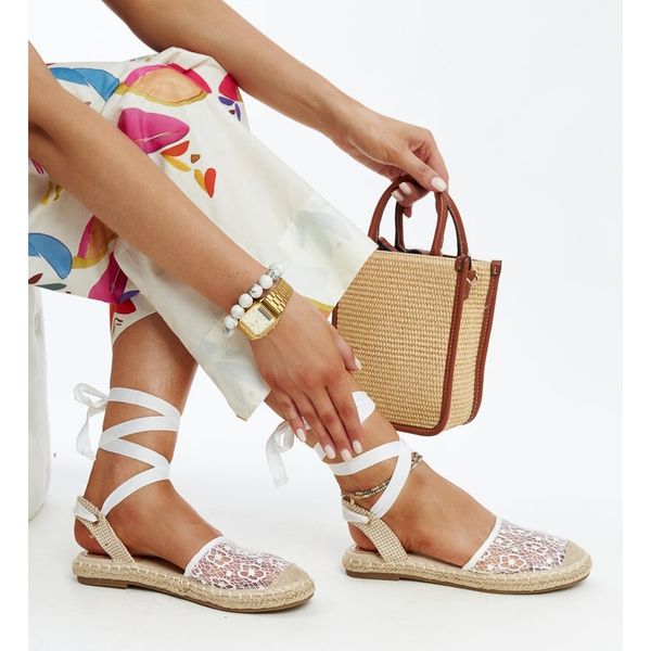 Białe koronkowe espadryle z odkrytą piętą Teha