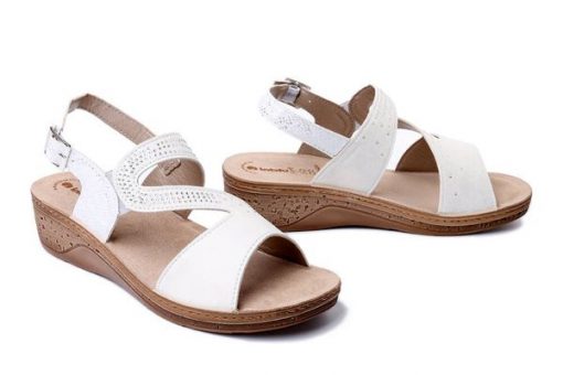 Sandały damskie. Skórzana, miękka wkładka. Inblu Anatomico Soft. Zapięcie na klamerkę. Gumy ściągające. Wygodny, stabilny koturn.